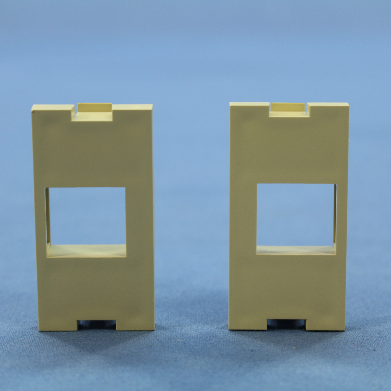 2 Leviton 41291-1MI ivory 1-port Quickport adapters for use in Leviton Multimedia Outlet Systems (MOS). This is a 1-unit high module that allows you to use a standard Quickport jack along side your MOS connectors and jacks; compatible with both MOS wallplates and MOS surface mount boxes. Leviton's MOS components are specifically geared toward fiber optic and enhanced audio/video applications. They provide a level of customization that is not often available through other systems. The MOS line is distinguished from other QuickPort housings by several features: