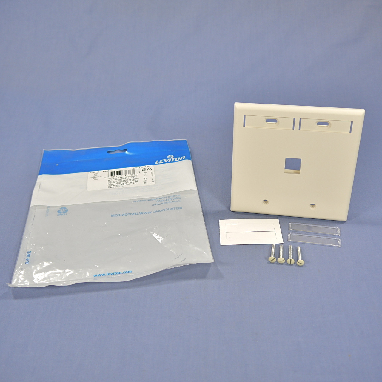 - Leviton Light Almond Quickport 1-Port ID Window Flush Wallplate 2-Gang Cover High-Impact Plastic 42080-1TP