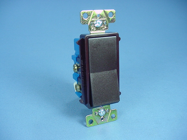 Pass & Seymour TM874 brown 4-way decorator rocker switch. Residential Grade, 4-way, grounding, back and side wired, rated 15A 120/277VAC. Features include: