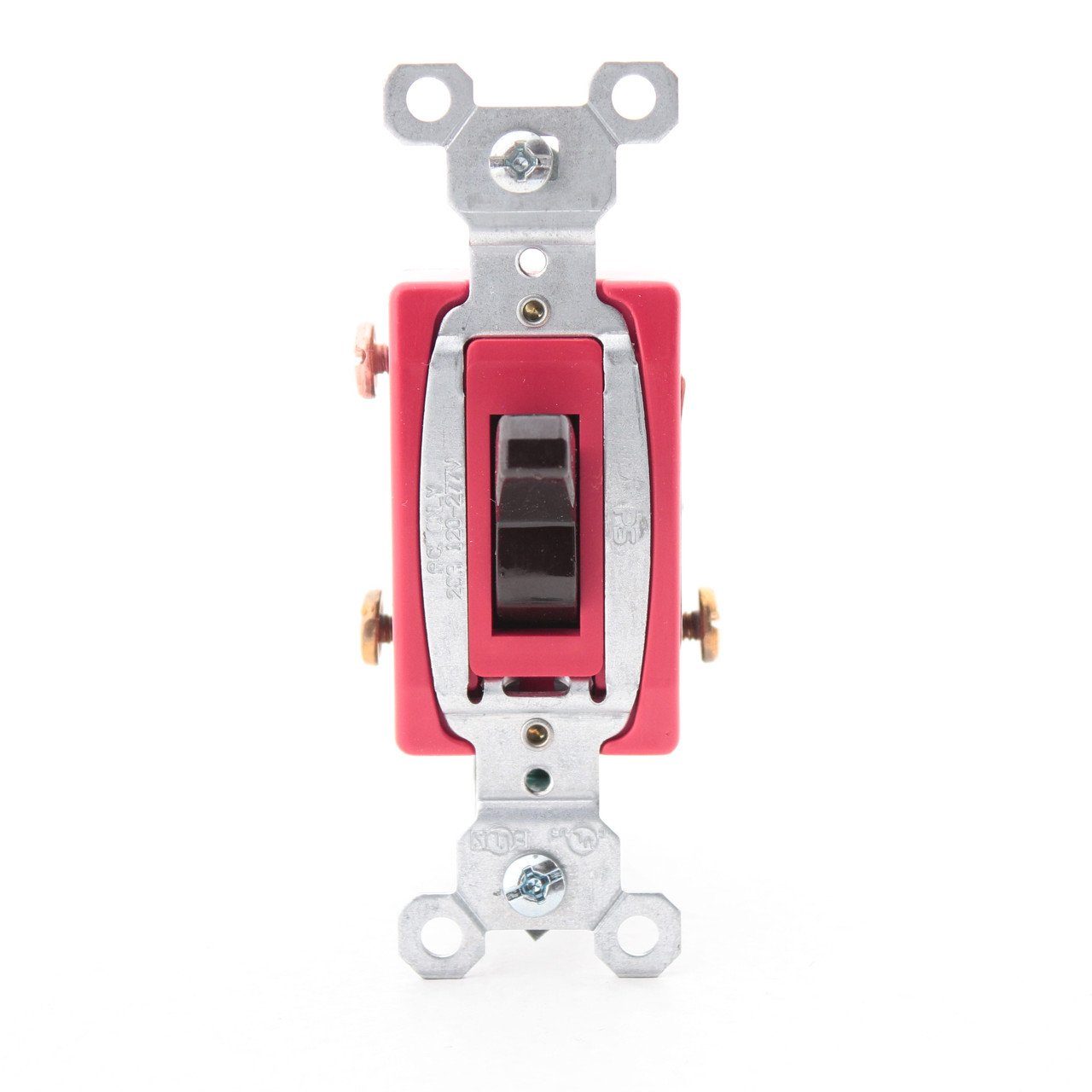 Pass & Seymour CS320 brown toggle light switch. Commercial Specification Grade, 3-way, side wired, grounding, rated 20A 120/277VAC. Features include: