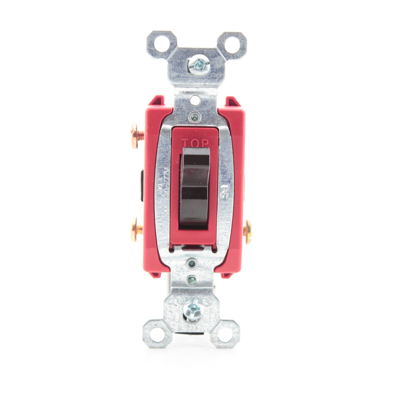 Pass & Seymour CS20AC3 brown toggle switch. Commercial Specification Grade, 3-way, side wired, grounding, rated 20A 120/277VAC. Bulk packed loose with no individual packaging or instructions. Features include:
