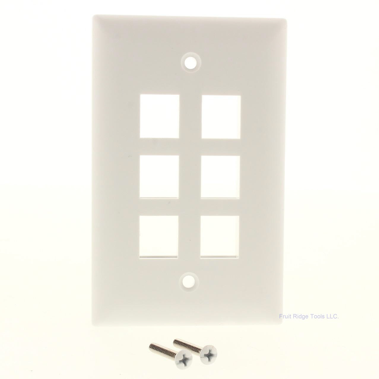 Pass and Seymour Trademaster KTPD6-W white 6-port Keystone wallplate. Flush mounted design that accepts On-Q snap-in modules for your audio, video, and telecommunications needs. Can be mounted to recessed wall boxes and brackets for a low profile look; also attaches to surface mount wiring boxes. Includes color matching mounting screws. Packaging may vary. Each is individually packaged; packaging may differ from photos. Features include: