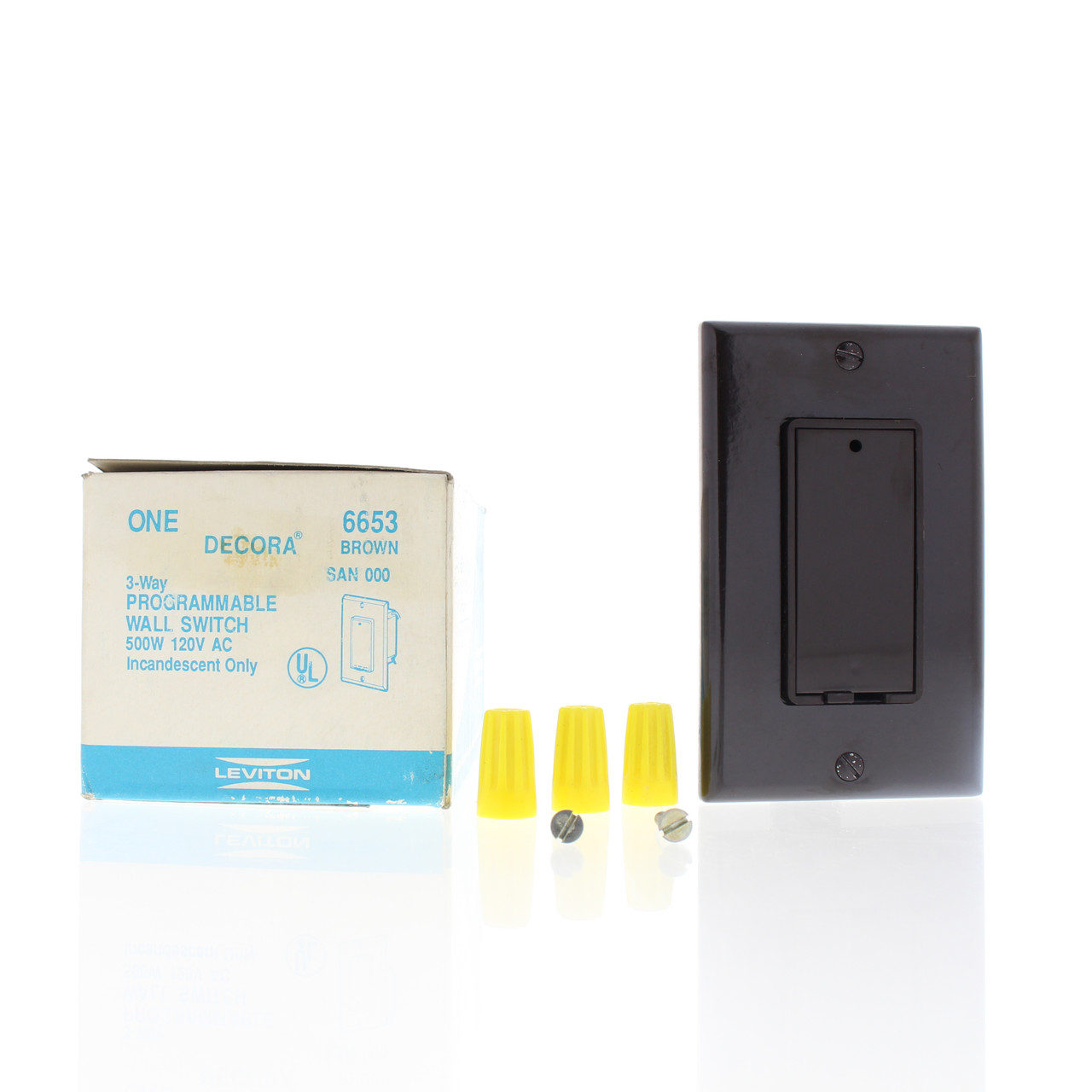 - Leviton 6653 Brown 3-Way Programmable Wall Switch 500W 120V Incandescent Only