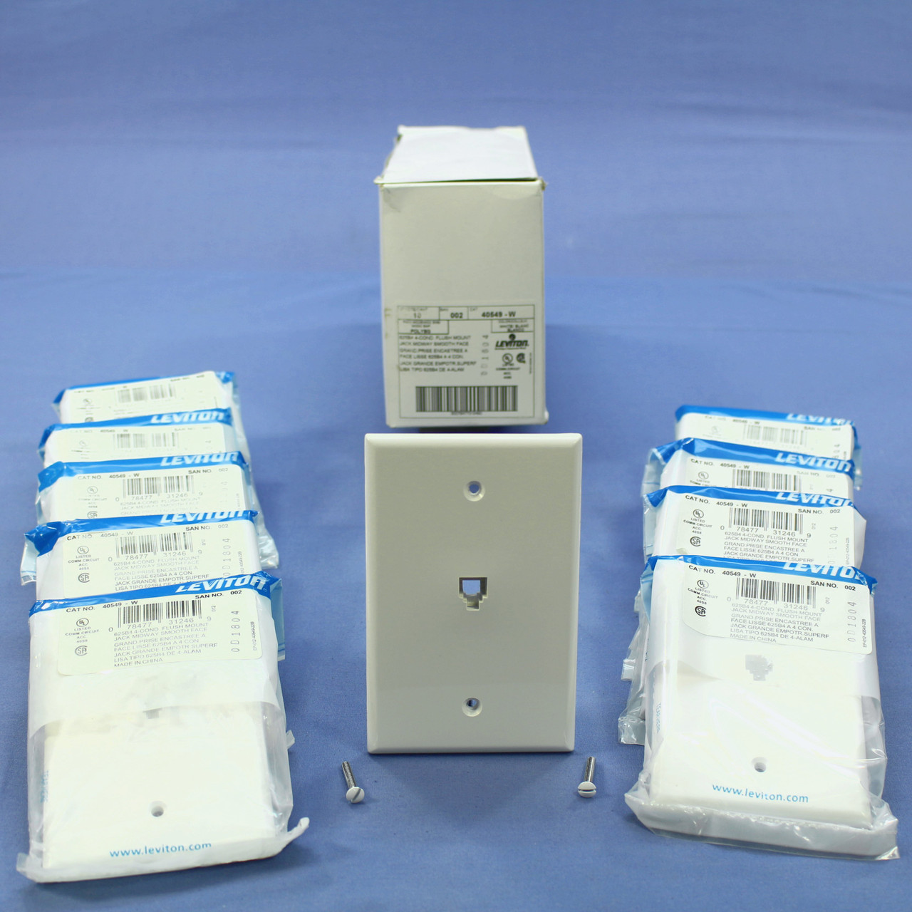 - 10 Leviton White LARGE Phone Jacks Telephone Wall Plates 6-Position 4-Wire 40549-W