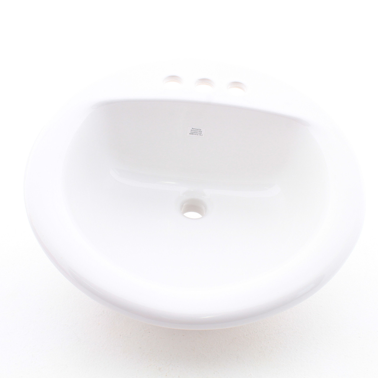 Manfield MS1390 white round lavatory bathroom sink with 4" faucet centers. This ceramic drop-in sink provides a clean and modern look for any bathroom. Its drop-in design allows for easy installation, while the overflow feature ensures efficient water drainage, making it a practical choice for residential or commercial use. Features include: