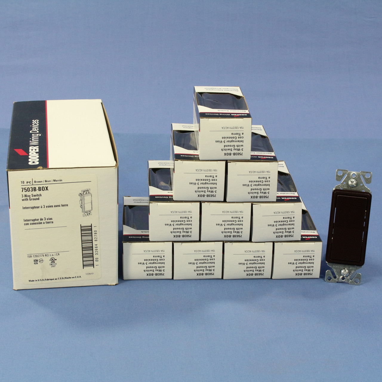 - 10 Cooper Brown RESIDENTIAL Decorator Rocker Wall Light Switches 3-Way 15A 7503B