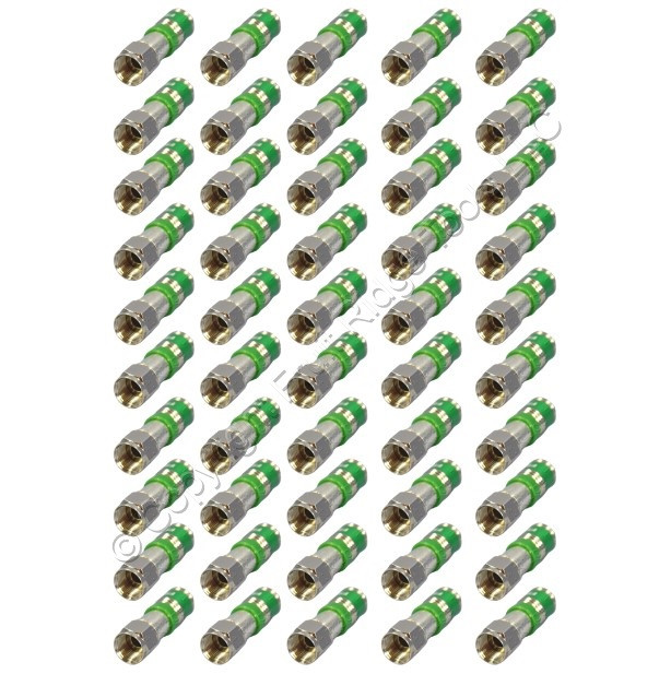 50 Leviton 40985-CPF green Universal F-Connectors for RG6 coaxial cable. Quickly and permanently terminate a 75 Ohm coaxial cable with an F-Connector tip - Leviton 40989-CPT crimping tool required (sold separately). Features include: