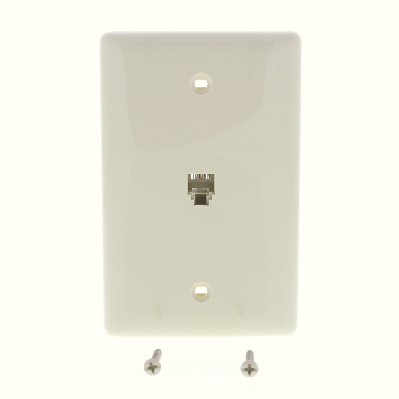 - Hubbell Ivory Molded In Mid-Size Phone Jack Wallplate Cover 4-Wire 6P4C NS735I