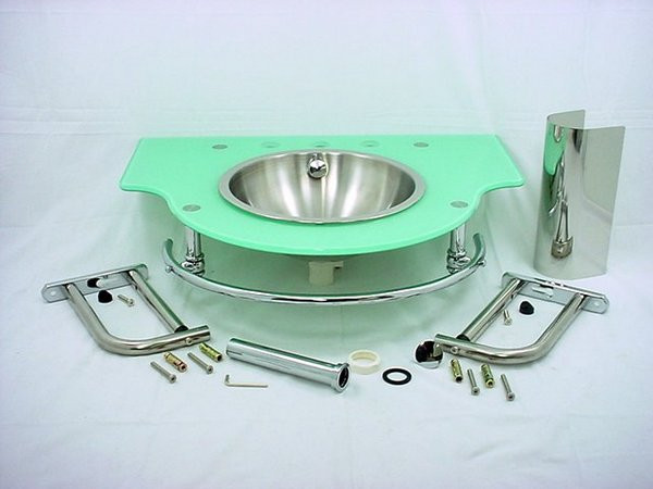 Sea foam glass vanity top with stainless steel sink bowl from Decolav, triple winner of the 2005 ADEX design awards. Features include: