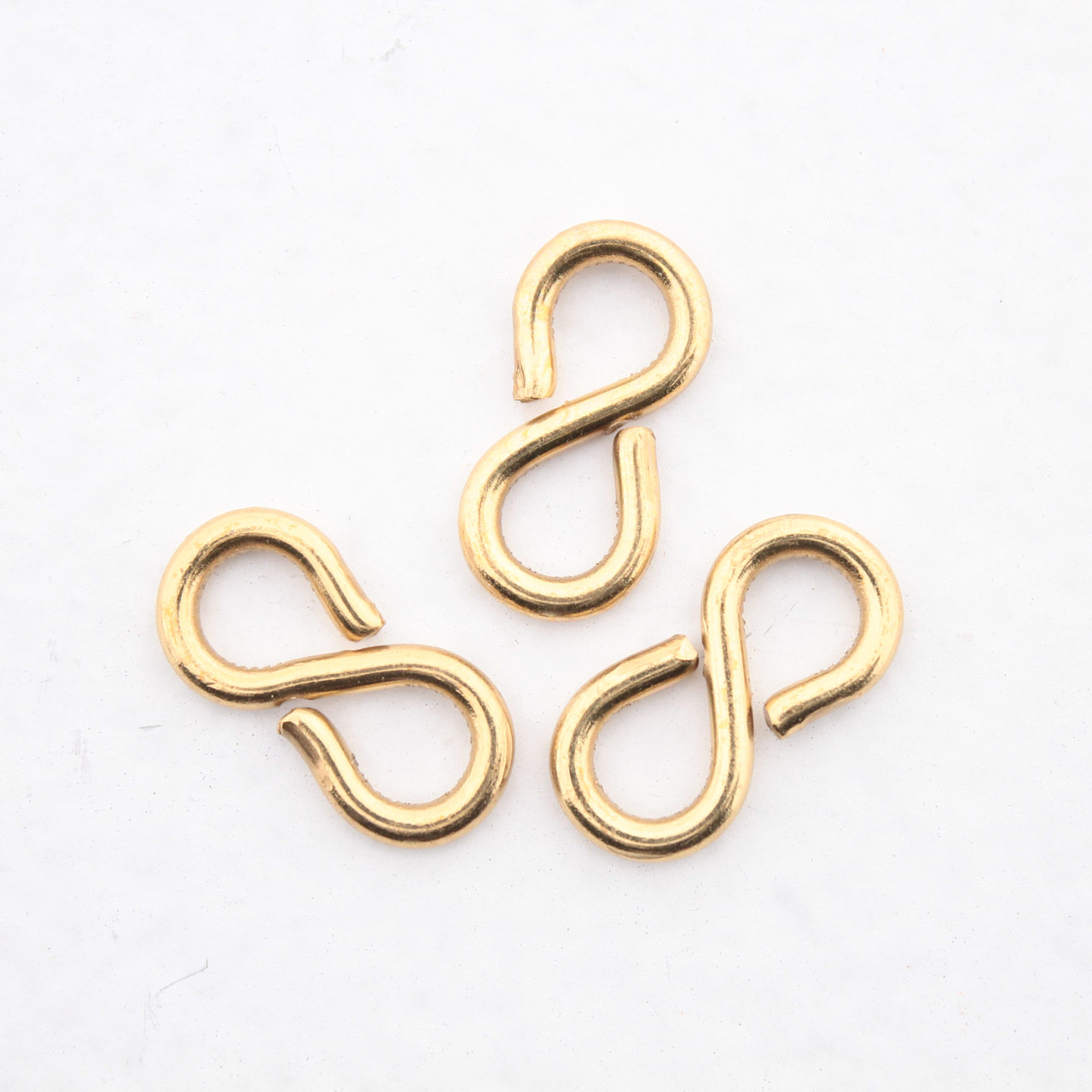 3 National Hardware V2073 (Stock #N121-491) solid brass closed "S" hooks. Hanging flower baskets or organizing tools, the options are endless with this hook. Dual purpose as it can be a stand alone hook or linked with other hooks or chains to customize hanging height. Each is individually packaged; packaging may differ from photo. Features include: