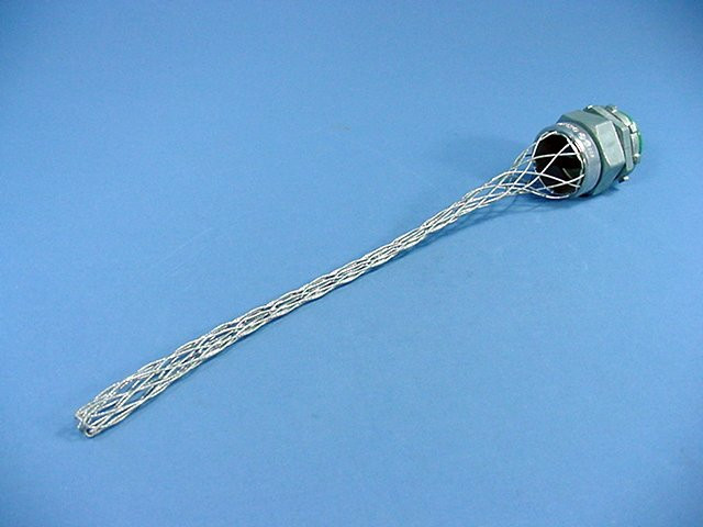 Pass and Seymour BOX120 wide range cable grip. "BOX120" is the part number; the price is for one cable grip. Used to connect cord or cable to electrical enclosures and equipment. Prevents pullout due to tension and limit the arc or bend at the point of entry; strain is distributed over the length of mesh rather than concentrated at one point or transferred to the internal termination. Wide-range grips are recommended for use in wiring of enclosures, power boxes, machine tools, and power centers. Bulk packed loose with no individual packaging or instructions. Features include: