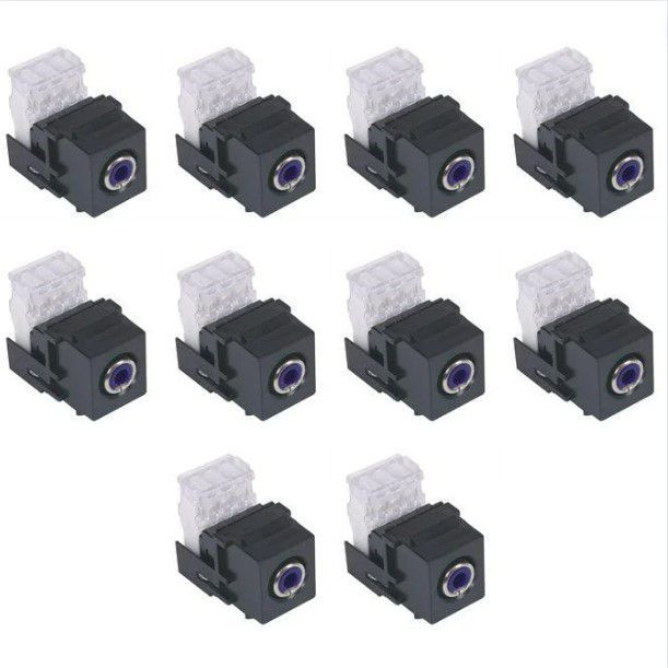 - 10 Hubbell Black Snap-Fit Keystone Stereo Audio RCA Jacks Blue 110-Type SFRC110B