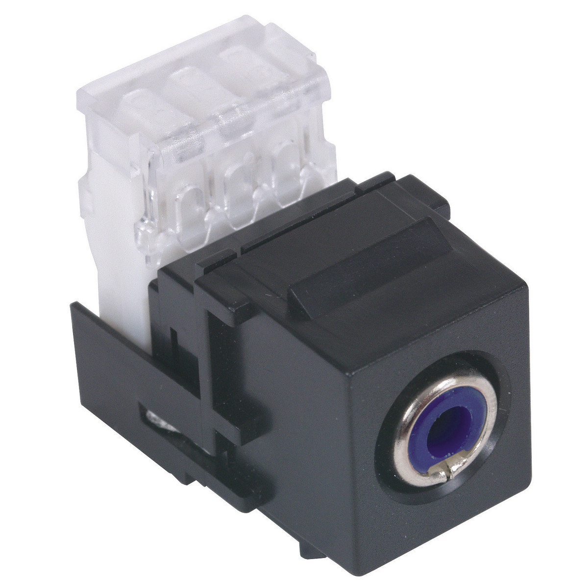 - Hubbell Black Snap-Fit Keystone Stereo Audio Jack Blue Center RCA 110-Type SFRC110B
