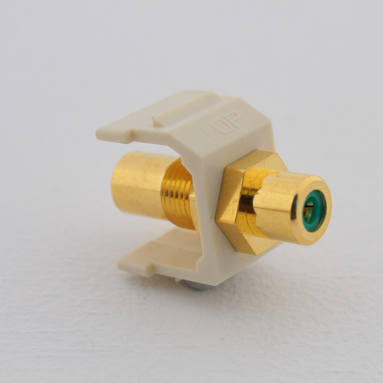 - Hubbell Light Almond Snap-Fit Keystone RCA Audio Video Cable Coaxial Jack Green Center Rear RCA Termination SFRCGNFFLA