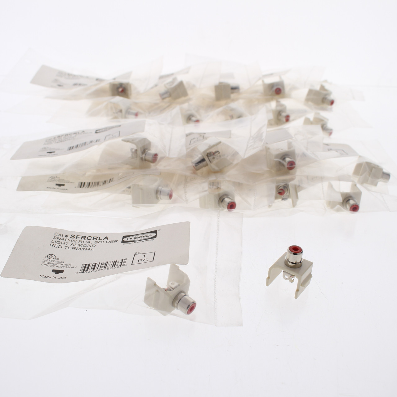 Hubbell Light Almond Snap-Fit Keystone RCA Audio Video Jack Red Center Solder Termination SFRCRLA