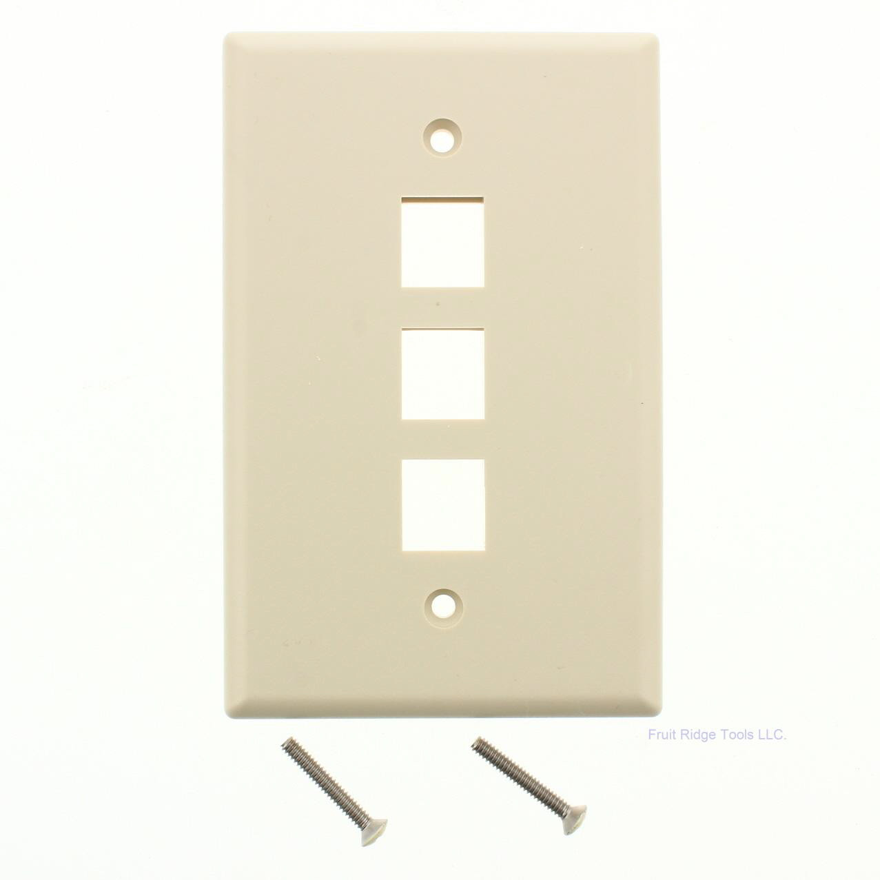 Eaton 5530V-MSP ivory mid-size 110 style 3-port thermoplastic wallplate. Flush mounted design that accepts 110 style snap-in standard jacks, F-connector, audio style, and blank face insert modules for your audio, video, and telecommunications needs. Can be mounted to recessed wall boxes and brackets for a low profile look; also attaches to surface mount wiring boxes. Includes color matching mounting screws. Each is individually packaged; packaging may differ from photo.