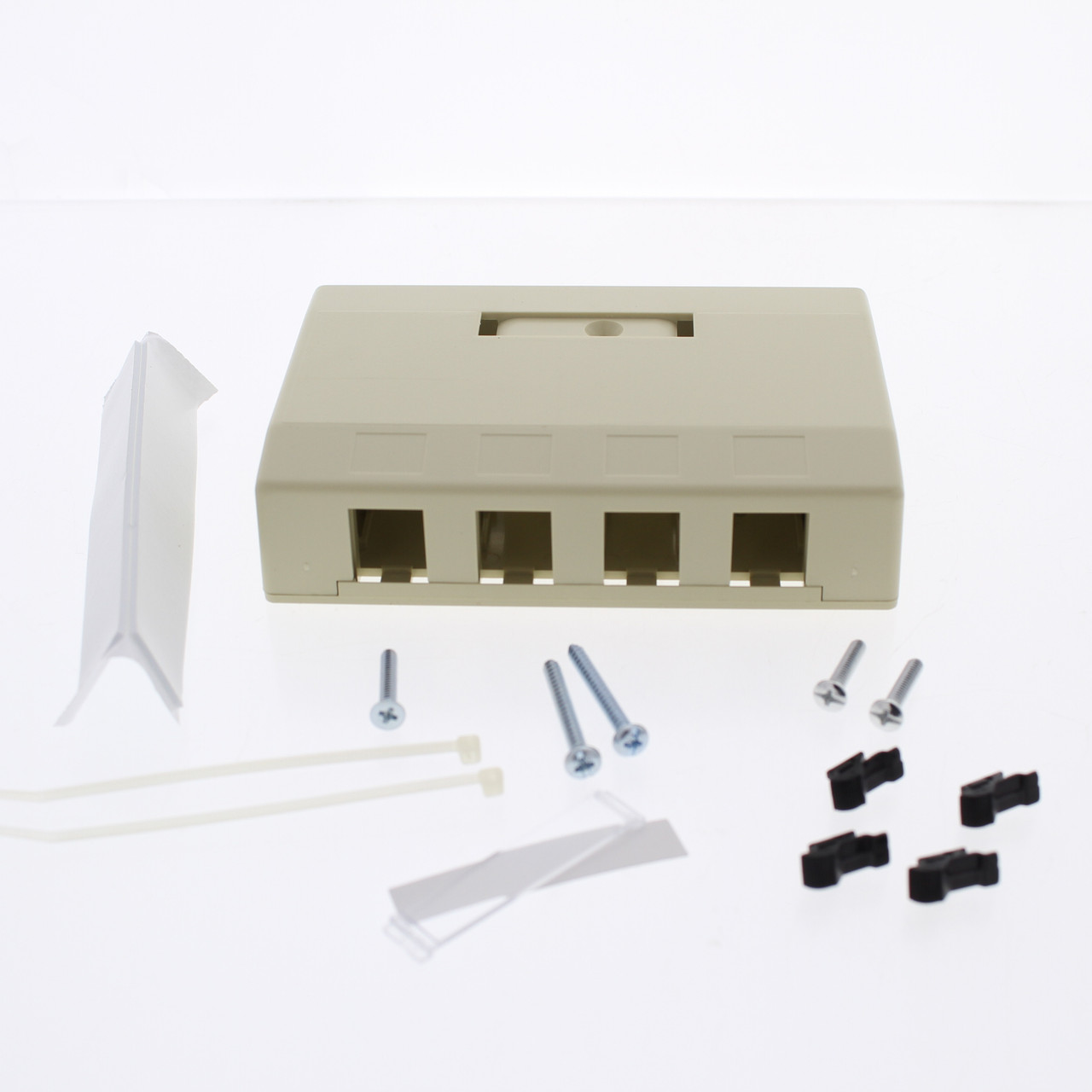 - Hubbell Ivory 4-Port Data Voice Media Keystone Housing Surface Mount Box ISB4EI