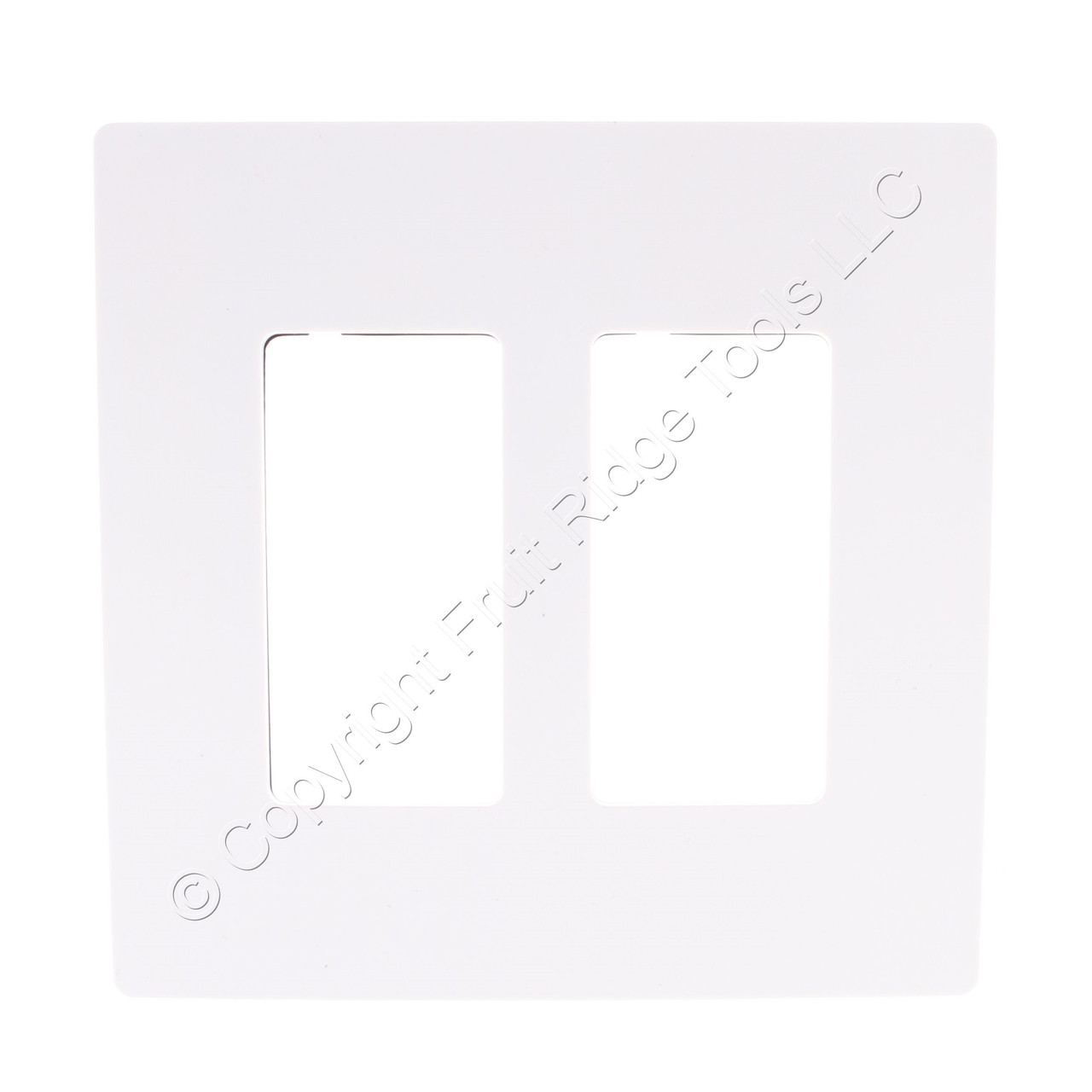 Pass and Seymour/Legrand Radiant RWP262W white decorator screwless wallplate. 2-gangs wide with 2 decorator openings (fits standard rockers/GFCI's), measuring 4.94"h x 4.96"w, 3/8" wider and higher than a standard size wall plate for more tolerance in covering ragged sheet rock openings. Screwless design adds a seamless look to your installation. Commercial Grade, made of an unbreakable high performance polycarbonate that can stand up to abusive environments - do not confuse it with regular residential wallplates which can chip or crack. Each is individually packaged with matching mounting screws. Features include: