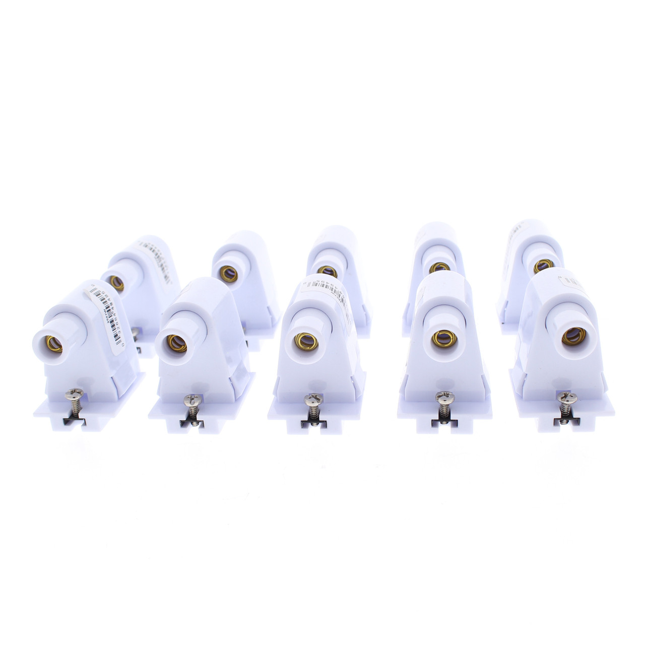 10 Eaton 2507W white plunger-end fluorescent lamp holders for T-8 or T-12 96-inch slimline lights. Should be paired with an Eaton 2504W plunger-end lampholder (sold separately). Bulk packed loose with no individual packaging or instructions. Features include: