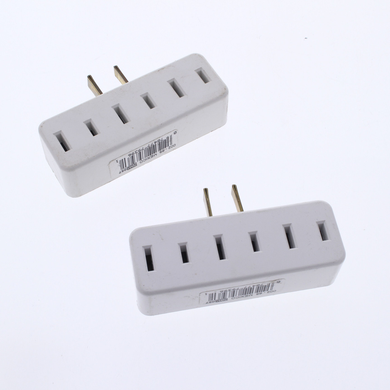 - 2 Leviton White Plug-In Triple Tap Outlet Adapter NEMA 1-15R 15A 125V Bulk 65-W
