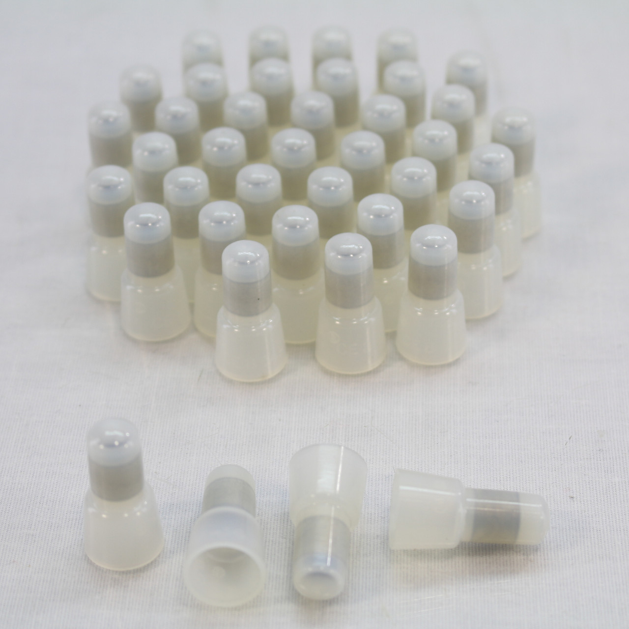 40 NSI closed end connectors. Nylon-insulated closed-end connectors feature a solid two-piece construction, a translucent nylon-molded insulator, as well as a metal wire connectors insert. Each is individually packaged; packaging may differ from photos. Features include: