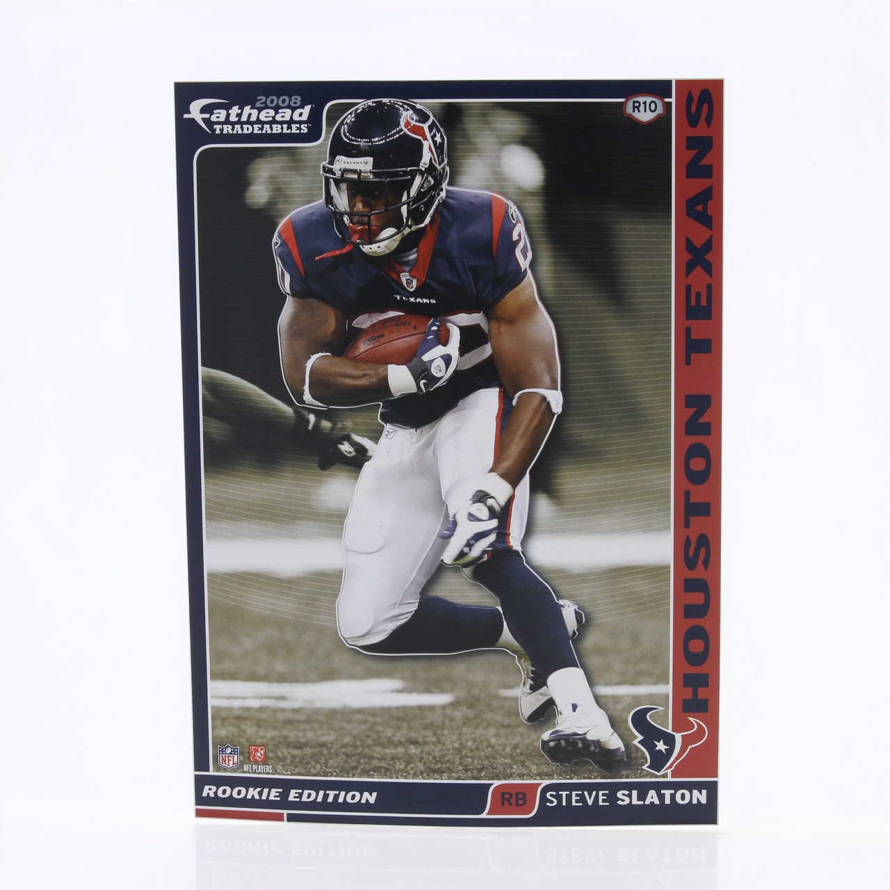 2008 NFL Rookie Edition Steve Slaton 5"X7" Fathead Tradeable. This Fathead Tradeable Rookie Edition puts NFL action in the palm of your hand- or in your locker, on books, your computer, or even your wall! There is no limit to the fun! Features include:
