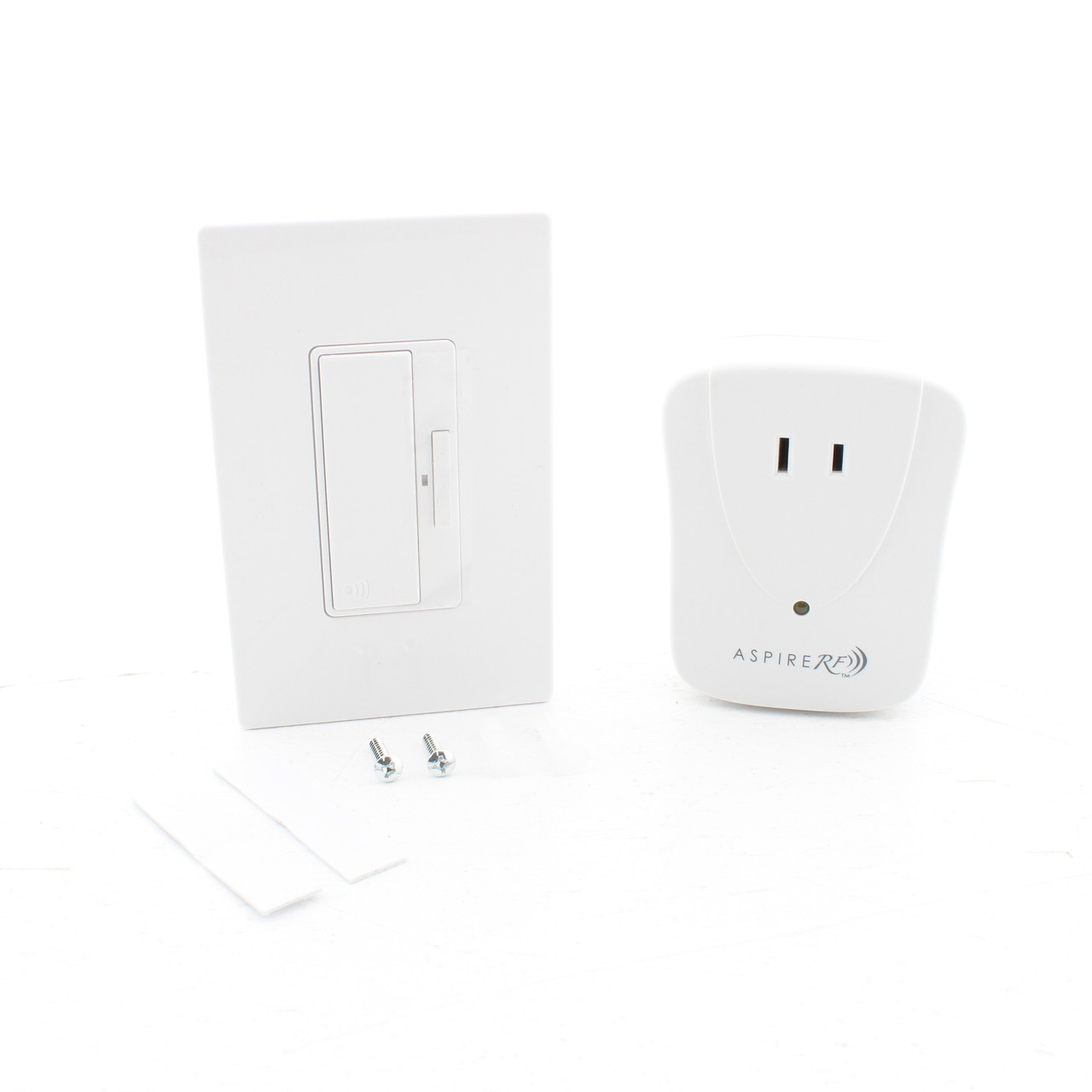 Eaton RFASAPMDW designer white Z-Wave battery operated switch combination kit. Kit includes: (1) RF9575DW designer white Anyplace battery-operated switch and (1) RFAPM white RF lamp switching module. Features include:
