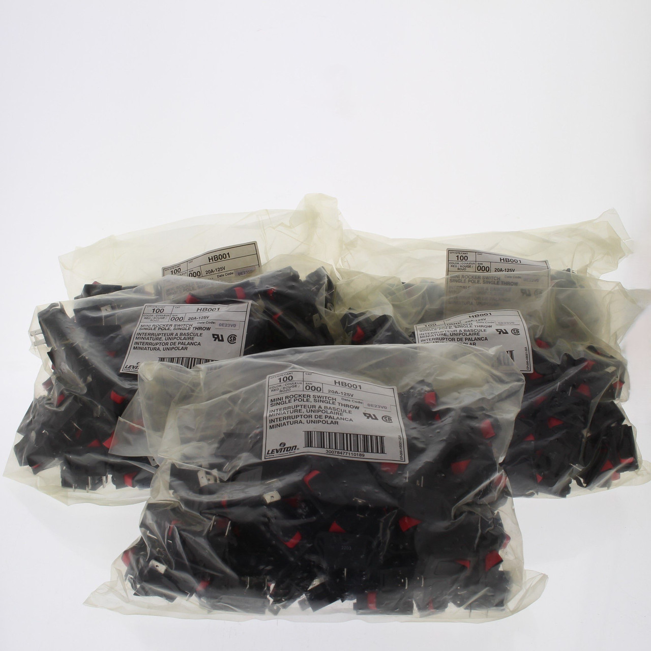 500 Leviton White Snap-In Mini Rocker Panel Switches ON/OFF 20A 125V Single Pole/Throw SPST Micro HB001-1