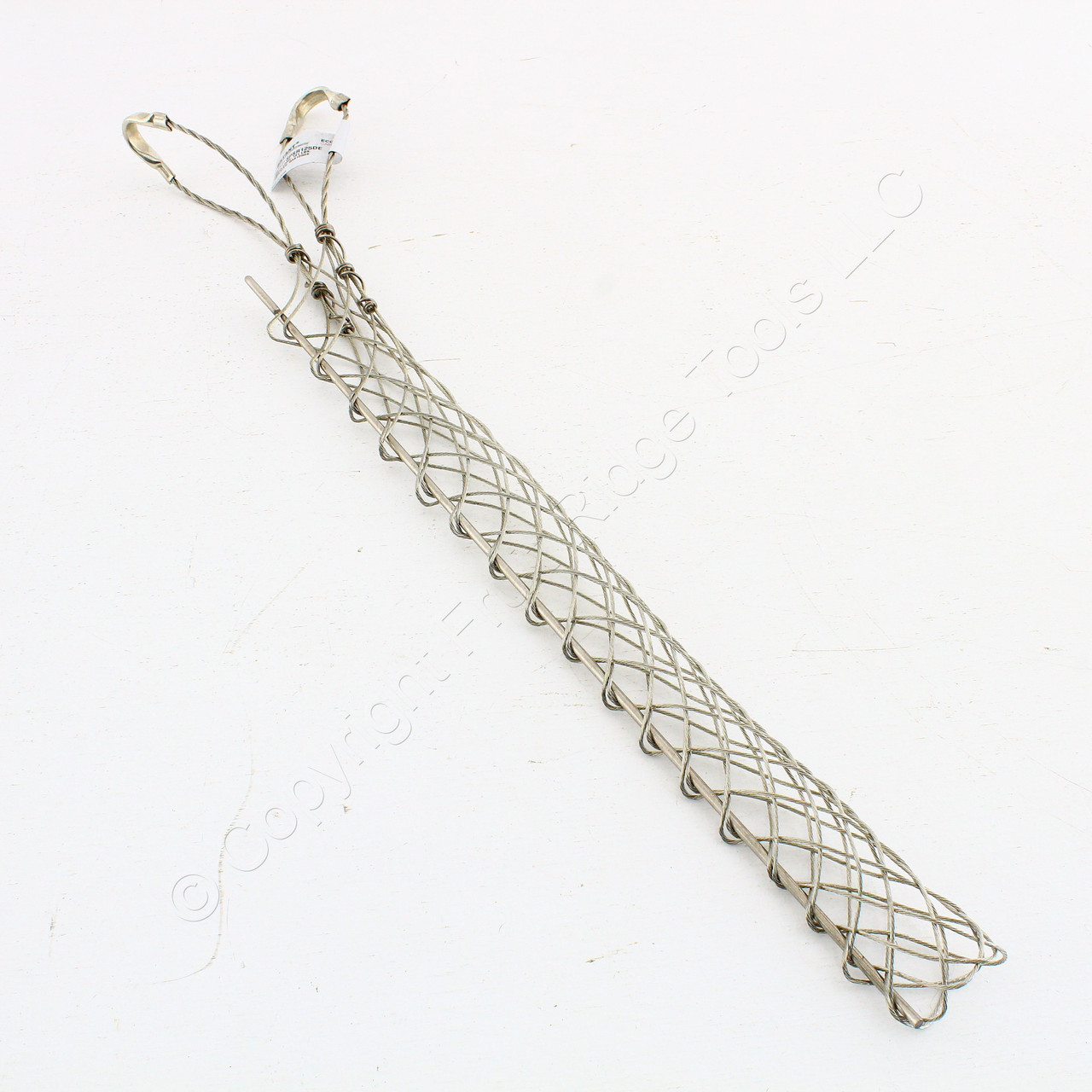 Bryant/Hubbell SPSR125DE standard duty, double U eye, split mesh, rod closing cable support grip (Bryant is a division of Hubbell). Used to hold the weight of electrical cable as it hangs in a vertical, sloping, or horizontal position. Electrical cable must be supported, or its dead weight can cause excessive strain or pullout at the connections resulting in power failure. Support grips also absorb additional strain from flexure, vibration, expansion, and contraction. Features include: