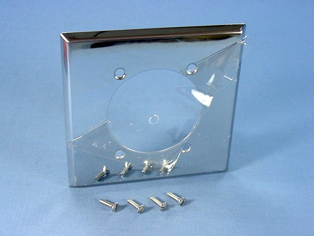 Cooper Wiring Devices #69 chrome-plated 2-gang metal receptacle wallplate. Fits standard 2.47" range and dryer receptacle - or any similarly dimensioned power outlet. Each is individually packaged with matching mounting screws.