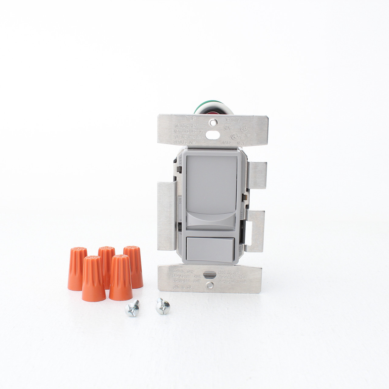 Eaton SUF7-GY gray universal phase-selectable slide dimmer. One dimmer that can be used in just about any installation: 120VAC, 277VAC, LED, CFL, electronic low voltage, incandescent, halogen, and fluorescent. The only type of lighting that this cannot control is magnetic low voltage (low voltage lighting with an external magnetic transformer). Suitable for single pole or 3-way installations - 3-way operaton requires a conventional 3-way ON/OFF switch at the second location. Features include: