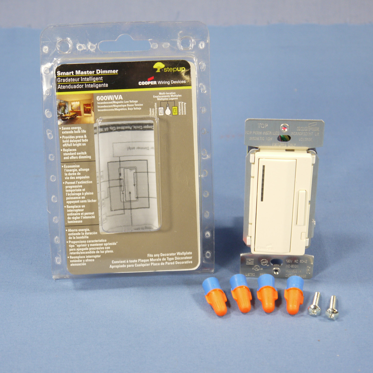 - Cooper Almond Smart Master Dimmer Preset Light Switch Multi-Way 600W Incandescent Only AIM06-A-K