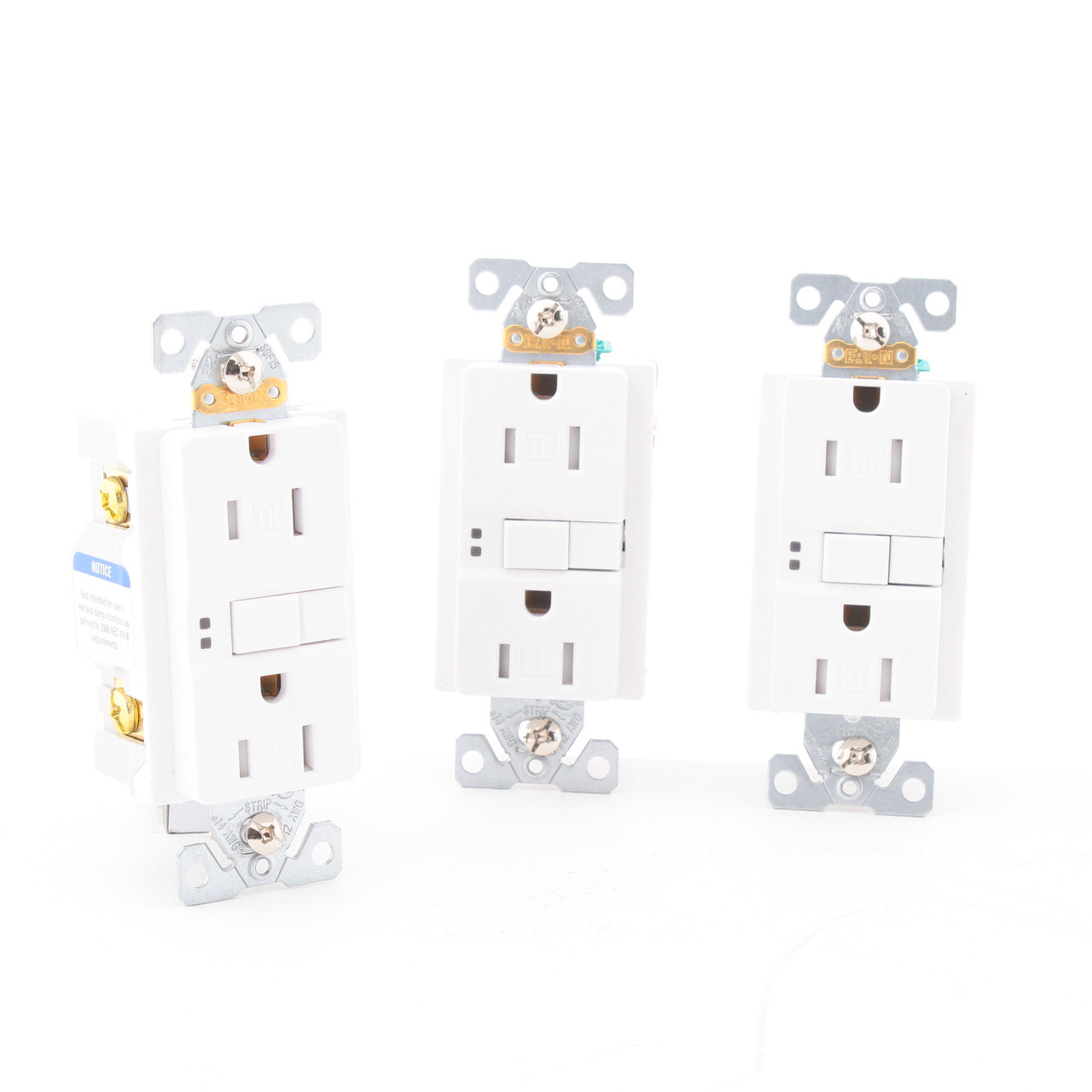 - 3pk Eaton White Tamper Resistant GFCI Self-Test Outlet Receptacle 5-15R 15A TRSGF15W