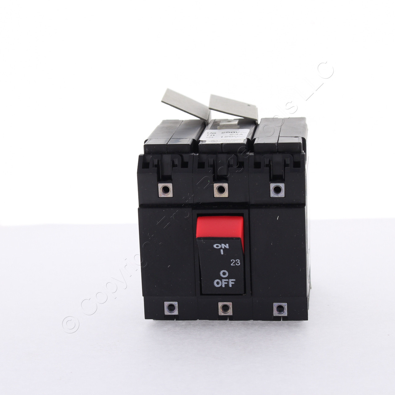 Bryant/Hubbell GFMDCB120240233P circuit breaker. For use in a Hubbell/Bryant GFCI sensing module. GFCI sensing modules are typically used in portable generator integrations to protect all outlets on a generator. In a ground sensing module the load is interrrupted by way of a hydrualic magnetic circuit breaker utilizing a shunt trip coil. Rated 23A 120240VAC 3-pole three phase.