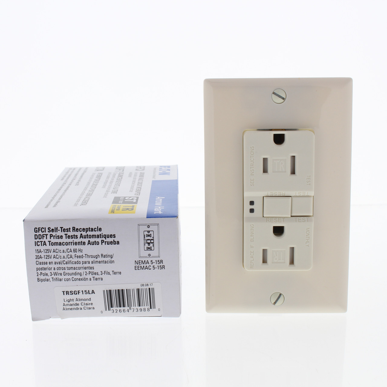 - Eaton Lt Almond Tamper Resistant GFCI Self-Test Outlet Duplex Receptacle 15A NEMA 5-15R TRSGF15LA