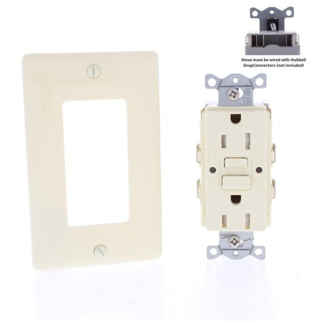 - Hubbell 15A SNAP-Connect Self-Testing Tamper Weather Resistant GFCI Outlet Receptacle Almond GFTWRST15SNAPAL