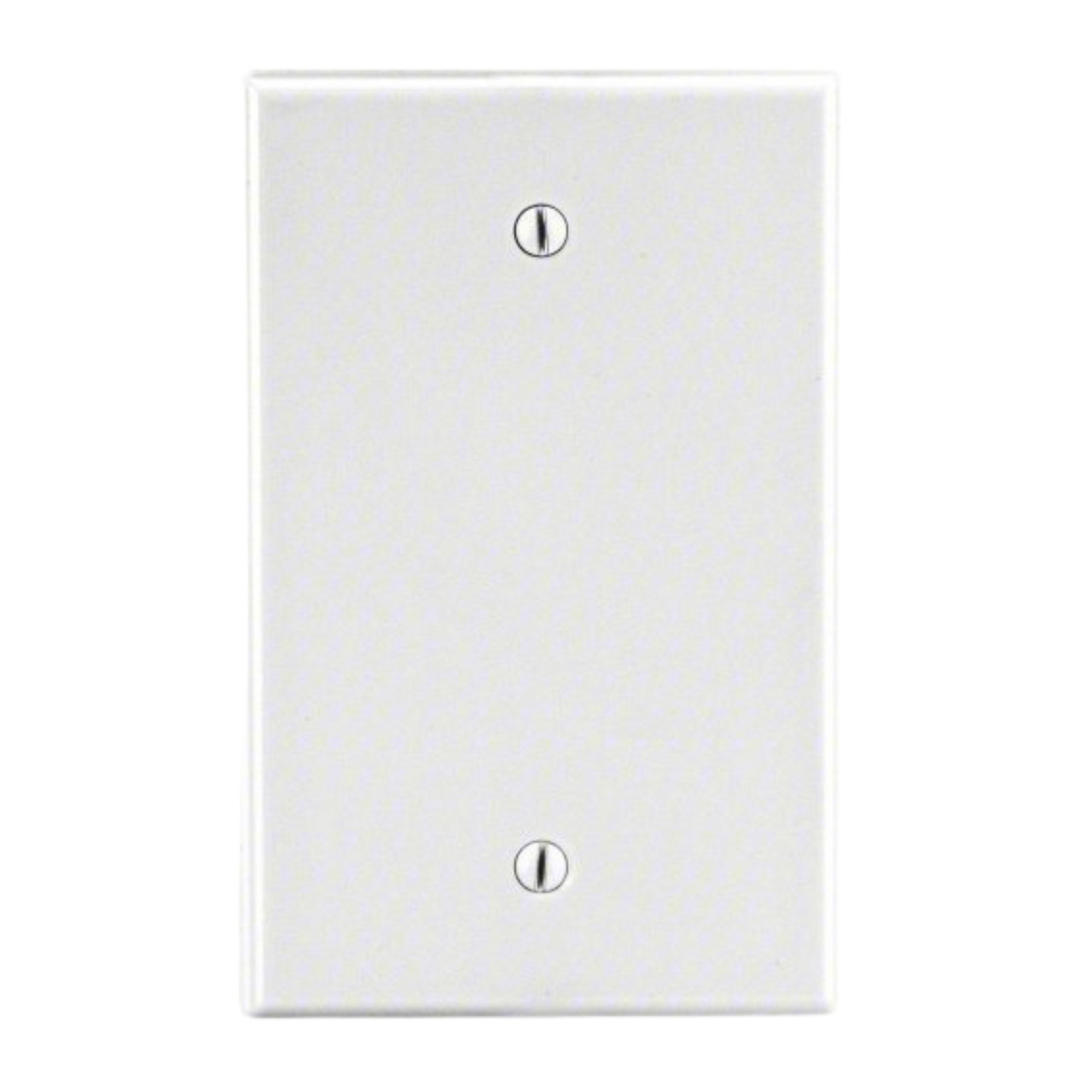 Hubbell P13W white 1-gang blank box mount wallplate. Commercial grade with slightly oversize dimensions, measuring 4.62"h x 2.87"w to provide an extra 1/8" in length and width than standard plates from other manufacturers for increased coverage around irregular wall openings. Made of a tough virtually unbreakable nylon - do not confuse it with regular plastic residential plates which can chip or crack. Features include: