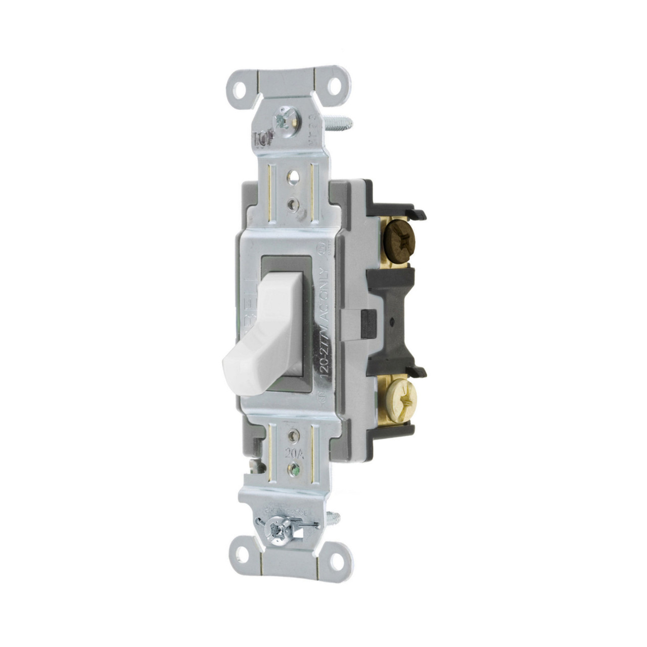 - Hubbell White 3-Way Commercial Toggle Wall Light Switch 20A 120/277V CSB320W