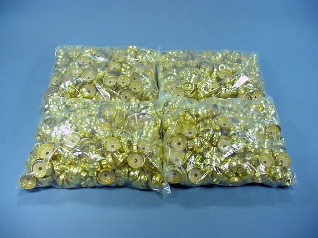 1,000 Leviton 7159 deep metal shell lampholder caps; polished gilt finish. 1/4 IPS threaded female bushing; no set screw. 1.36" inner diameter to fit Electrolier cores and shells.