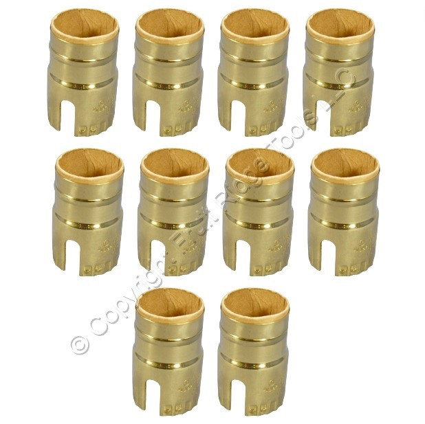 10 Leviton 7113 pull chain, turn key, or turn knob lamp socket metal shells with insert. This is the shell only - it does not include the cap or core - used for replacement of the exterior of a lamp socket. For use with Electrolier pull chain cores and caps that are rated 250W. Fits Leviton 7090 and similar non-push-thru lampholders. Each is individually packaged; packaging may differ from photo. Features include: