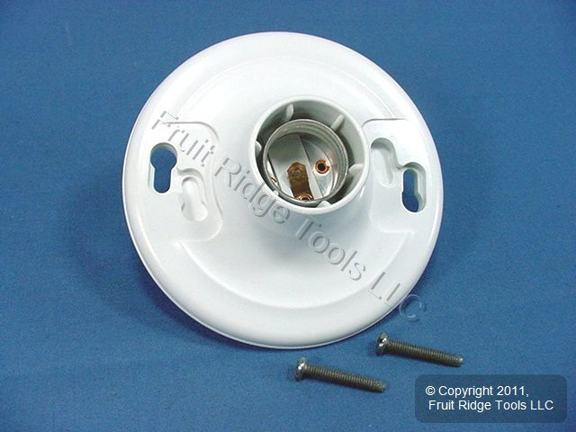 Leviton 8829-CW4 white urea outlet box lampholder socket. Medium base, keyless, single circuit, 660W 600V, with a twist lock mounting base. Features include: