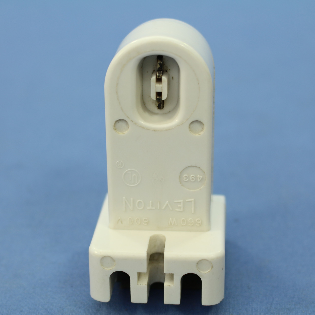 - Leviton White High Output T8 T12 Fluorescent Lamp Holder T8 T-12 Light Socket Vertical Fixed End 493 Bulk