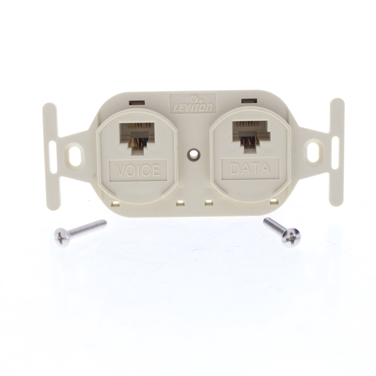 - Leviton 41360-IDI Ivory Duplex 8-Wire Phone Jack Wallplate