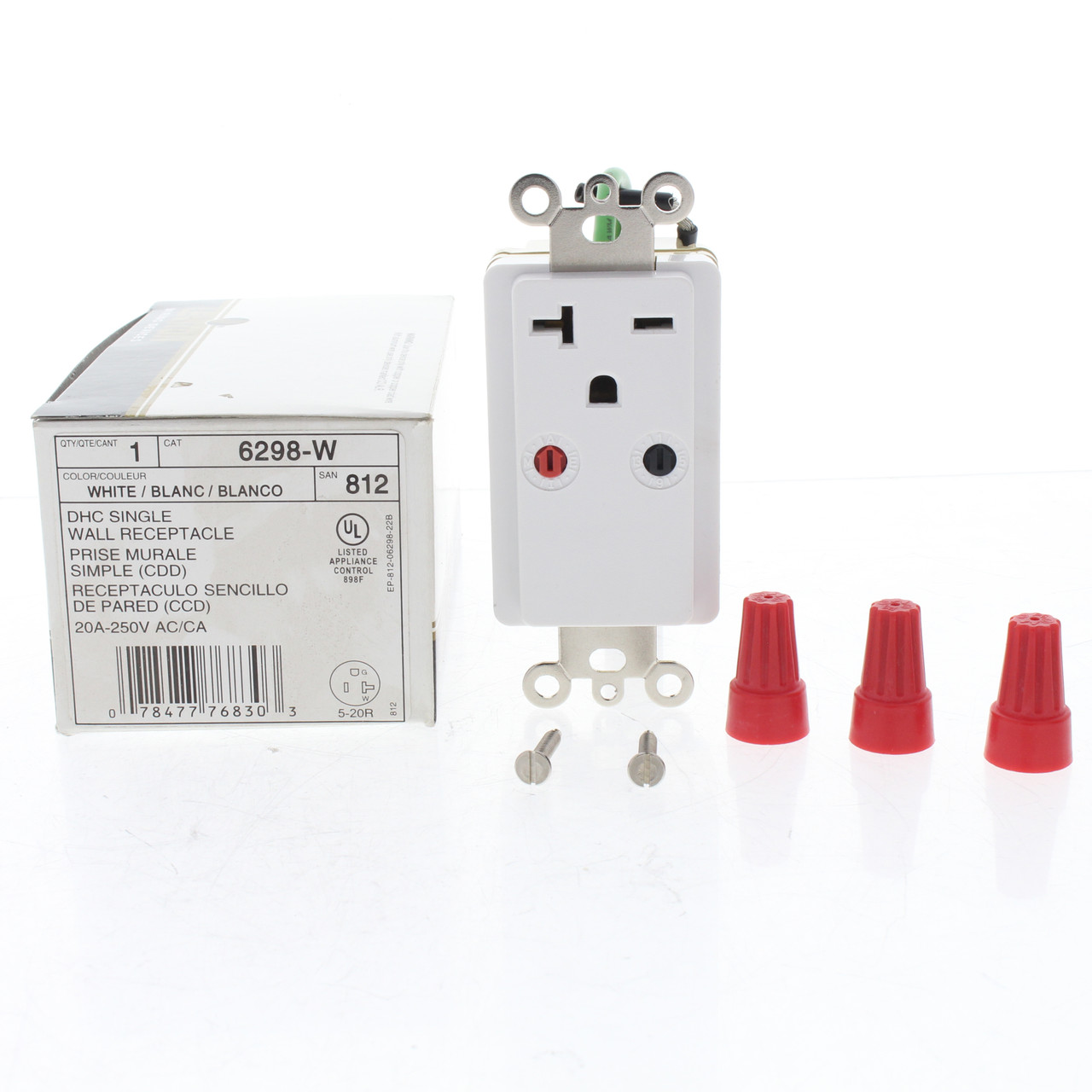 - Leviton 6298-W White DHC Single Wall Receptacle 20A 250V