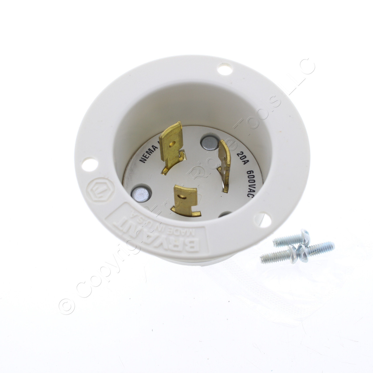 - Bryant L9-20 Locking Flanged Inlet L9-20P Motor Base Plug 20A 600V 70920MB