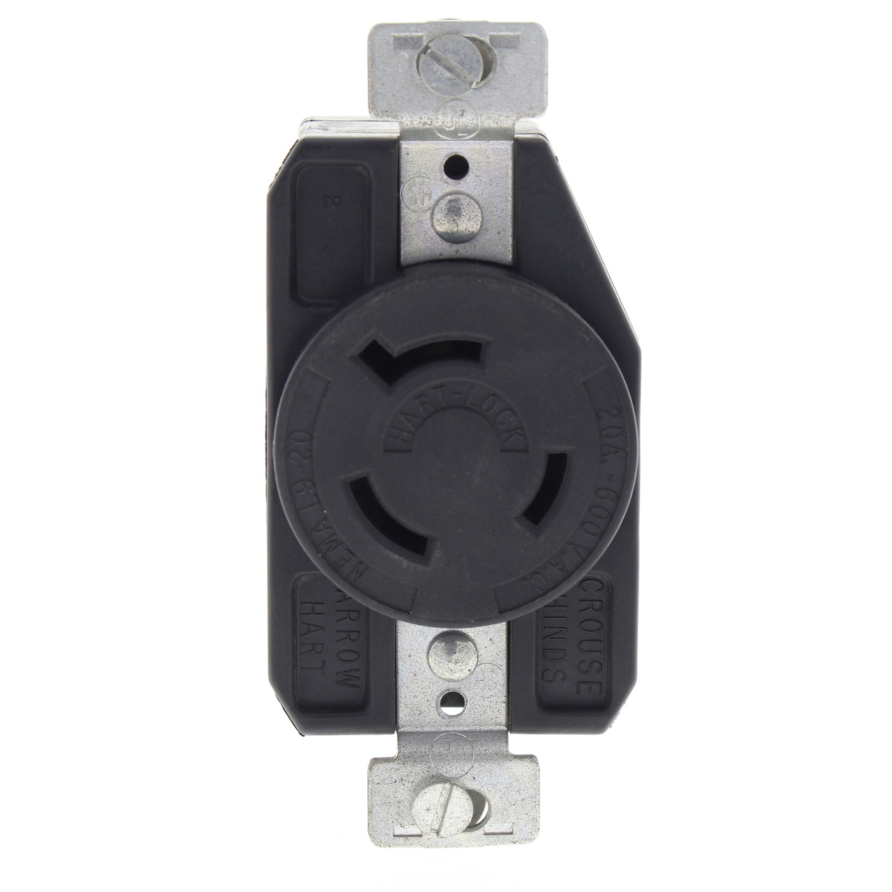 - Arrow Hart Industrial Grade Black Single Locking Receptacle 20A 600V NEMA L9-20 2-Pole 3-Wire CWL920R