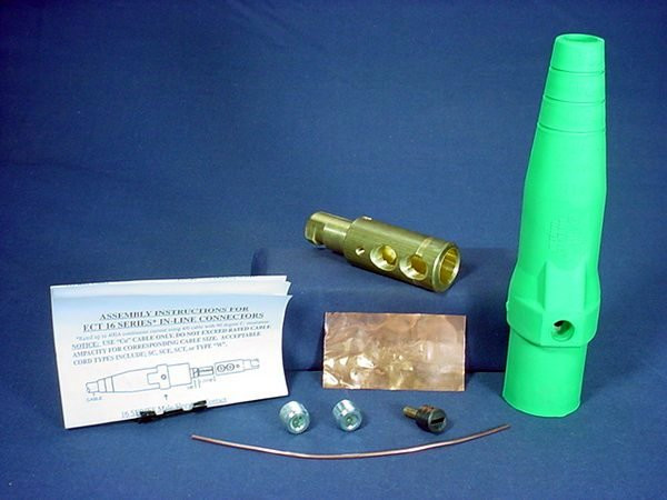 Leviton 16D24-G green male cam-type detachable plug - double set screw style. It is for use with ECT 16 Series taper nose connectors. Features include:
