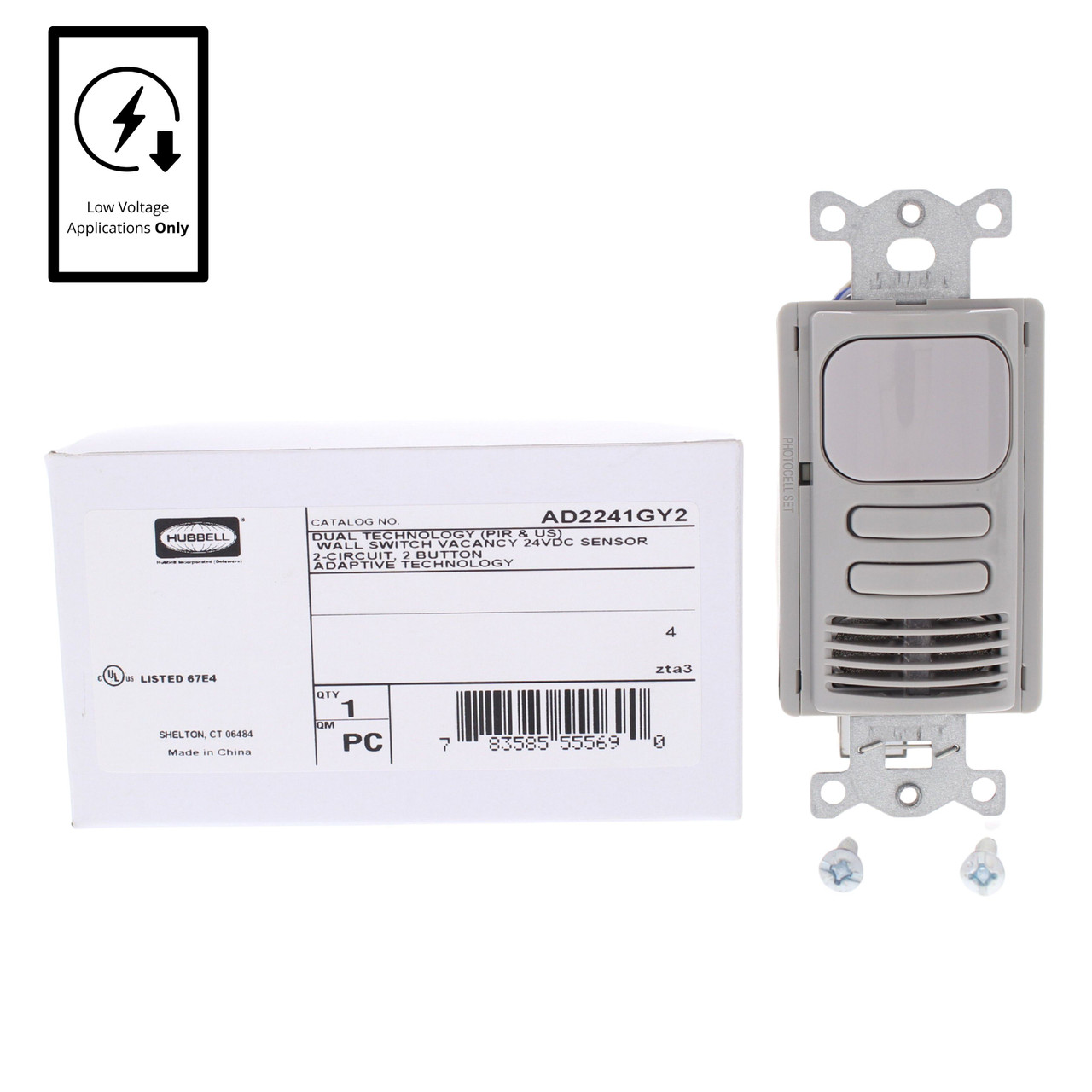 - Hubbell Gray Vacancy Sensor Switch Low Voltage PIR/US 2-Circuit 24VDC AD2241GY2
