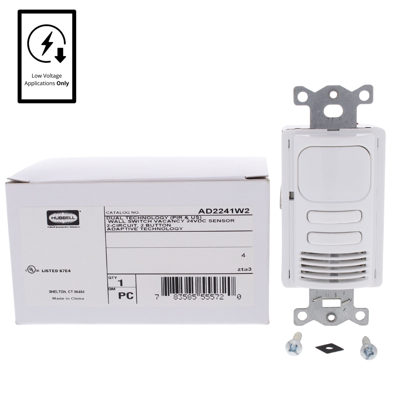 - Hubbell White Vacancy Sensor Switch Low Voltage PIR/US 2-Circuit 24VDC AD2241W2