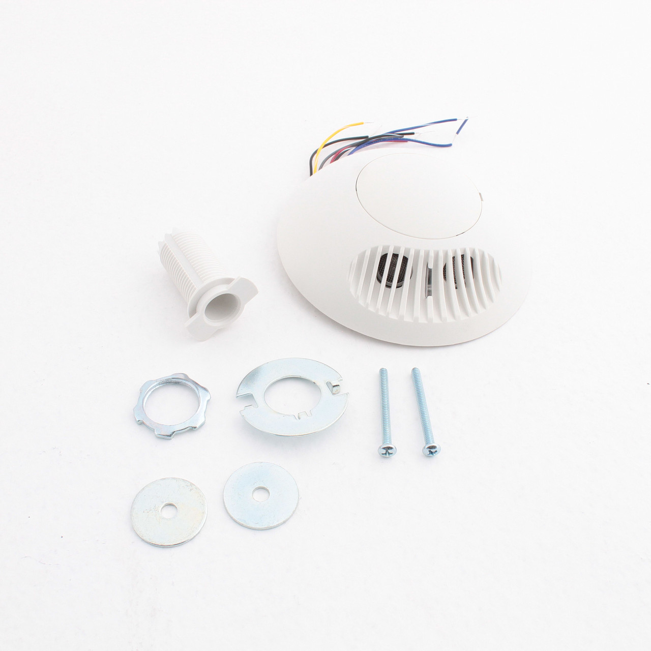 Leviton ODC10-URW white ultrasonic ceiling mount occupancy sensor for use with a Leviton ODP series power pack. The ability of this unit to observe, analyze and adjust is nothing short of astounding. Secondary relay can be used to send control signals to HVAC systems. Advanced Ultrasonic sensing technology for highly accurate monitoring with excellent immunity to air currents and other interference. All-digital self-adjusting technology provides Install and Forget solution for automatic lighting control. Features include: